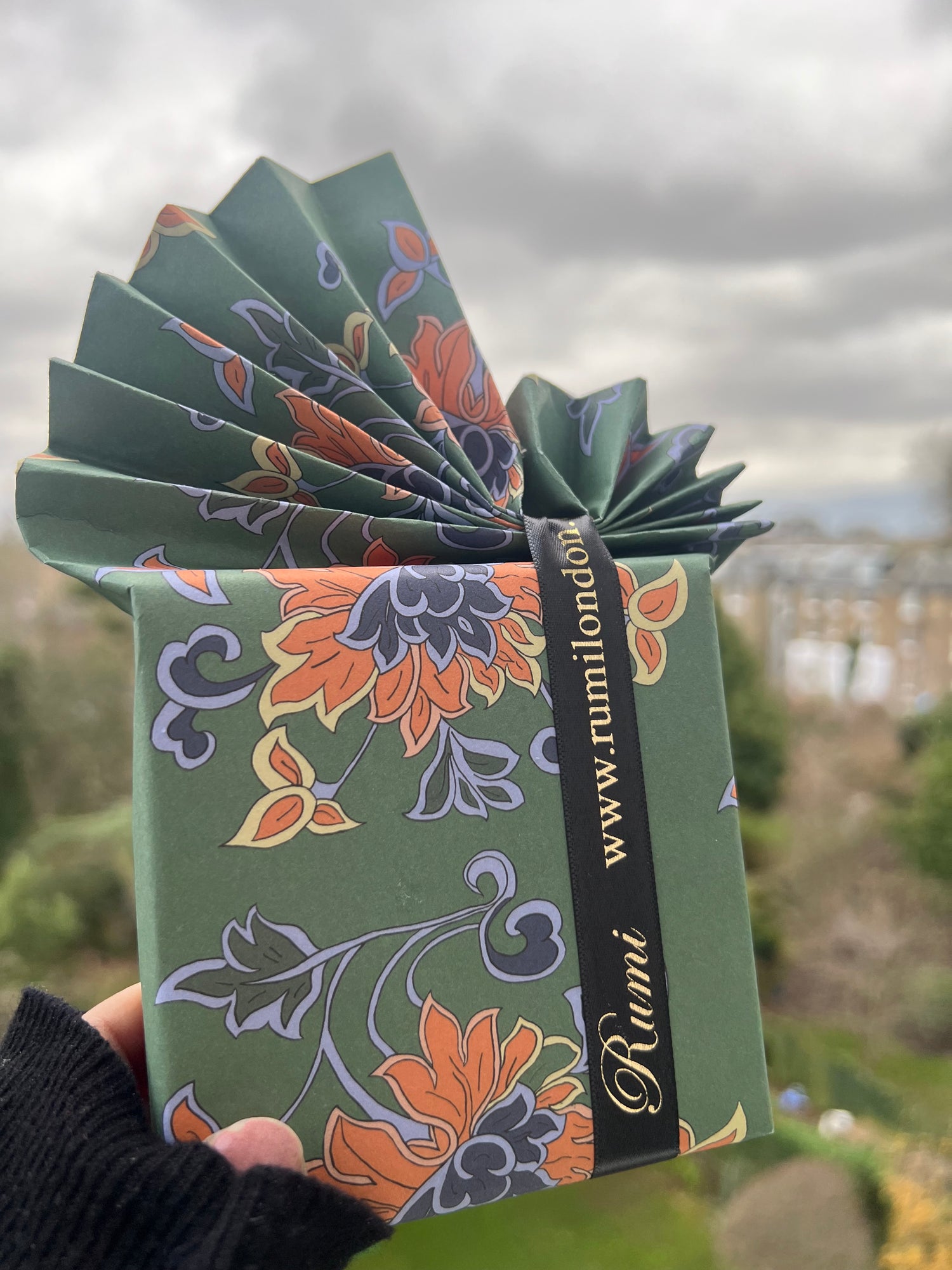 RUMI silk accessories are designed and printed in the UK. Every design has a unique imprint of the local art, history and culture and connects to my story.