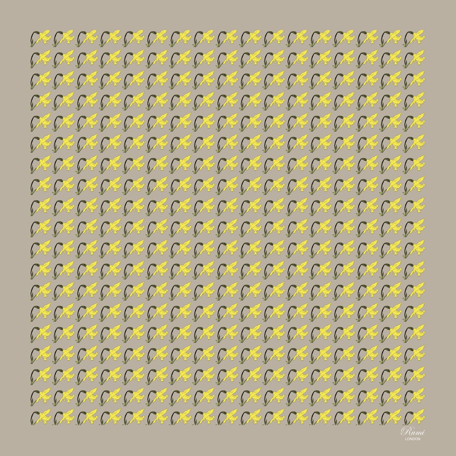 This daffodils silk pocket square will make the perfect accompaniment to your favourite blazer or jacket. Crafted from pure silk twill and a signature logo in one corner, the subtle explosion of yellow daffodils against a light grey base, adds a certain charm to the pocket square.